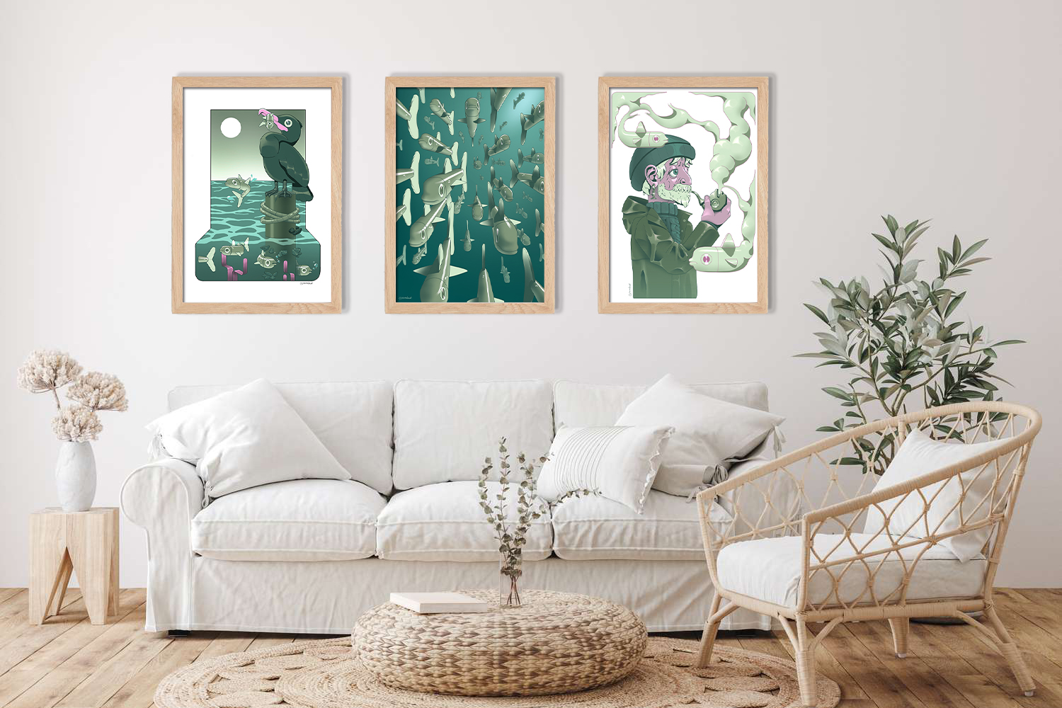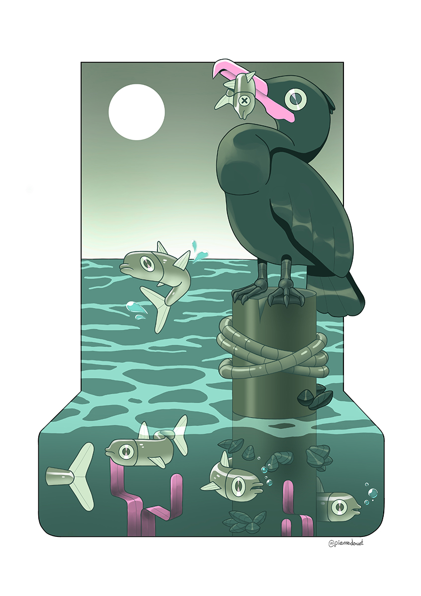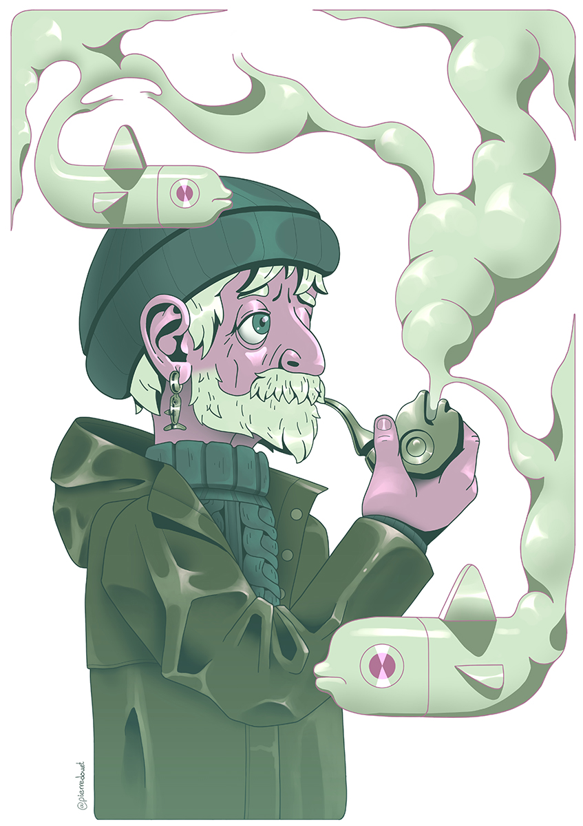 Growing up near the sea filled my imagination with stories and images that still nourishes me to this day. There is nothing more soothing than the sound of the waves crashing against the rocks, or as beautiful as the colours of the sea on a winter’s day. This series of posters invites you to my world, my own universe, made of fishermen reminiscing of old tales. Get yourself lost in the depth of the sea, and enjoy the adventure it takes you on.