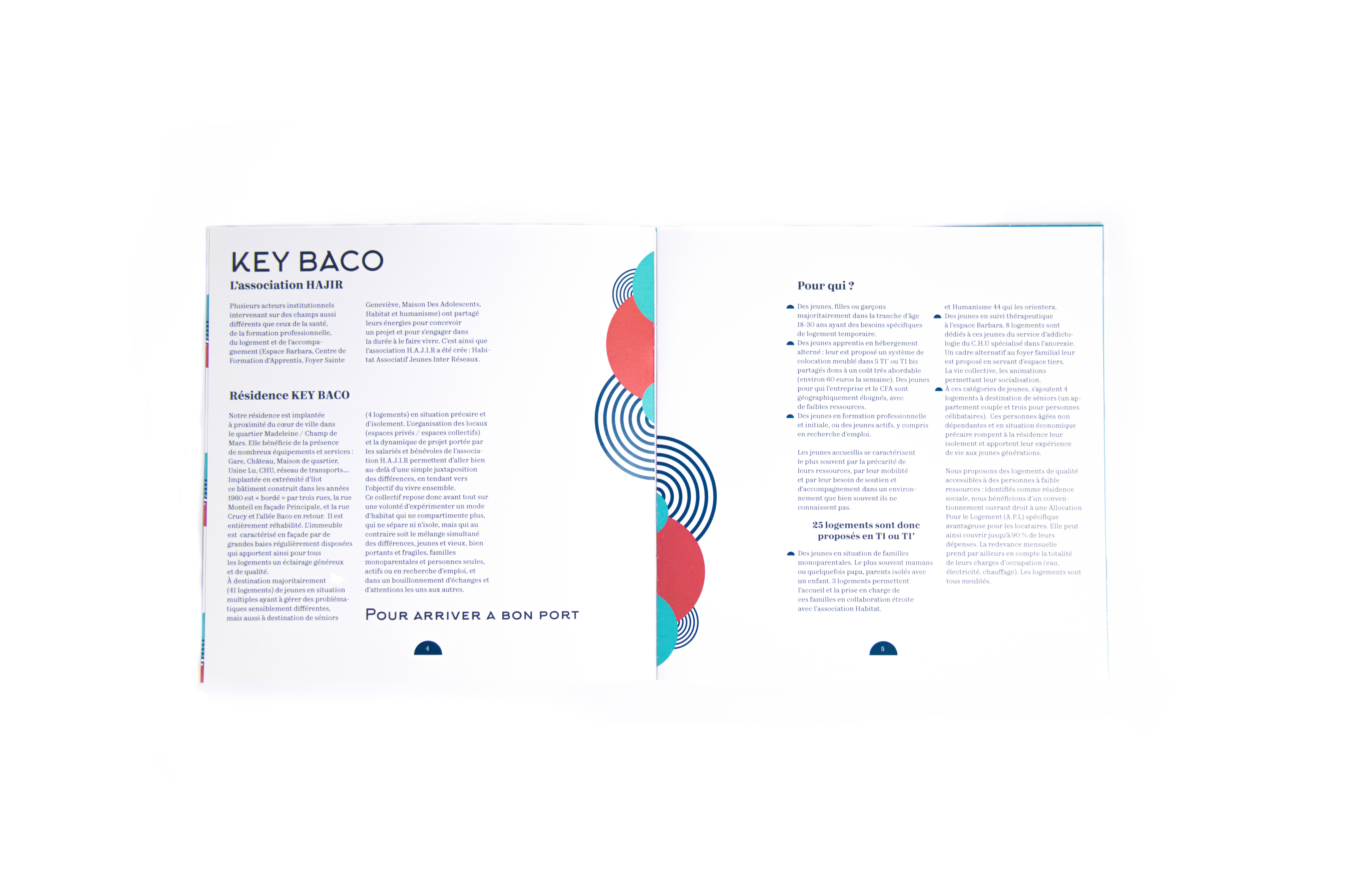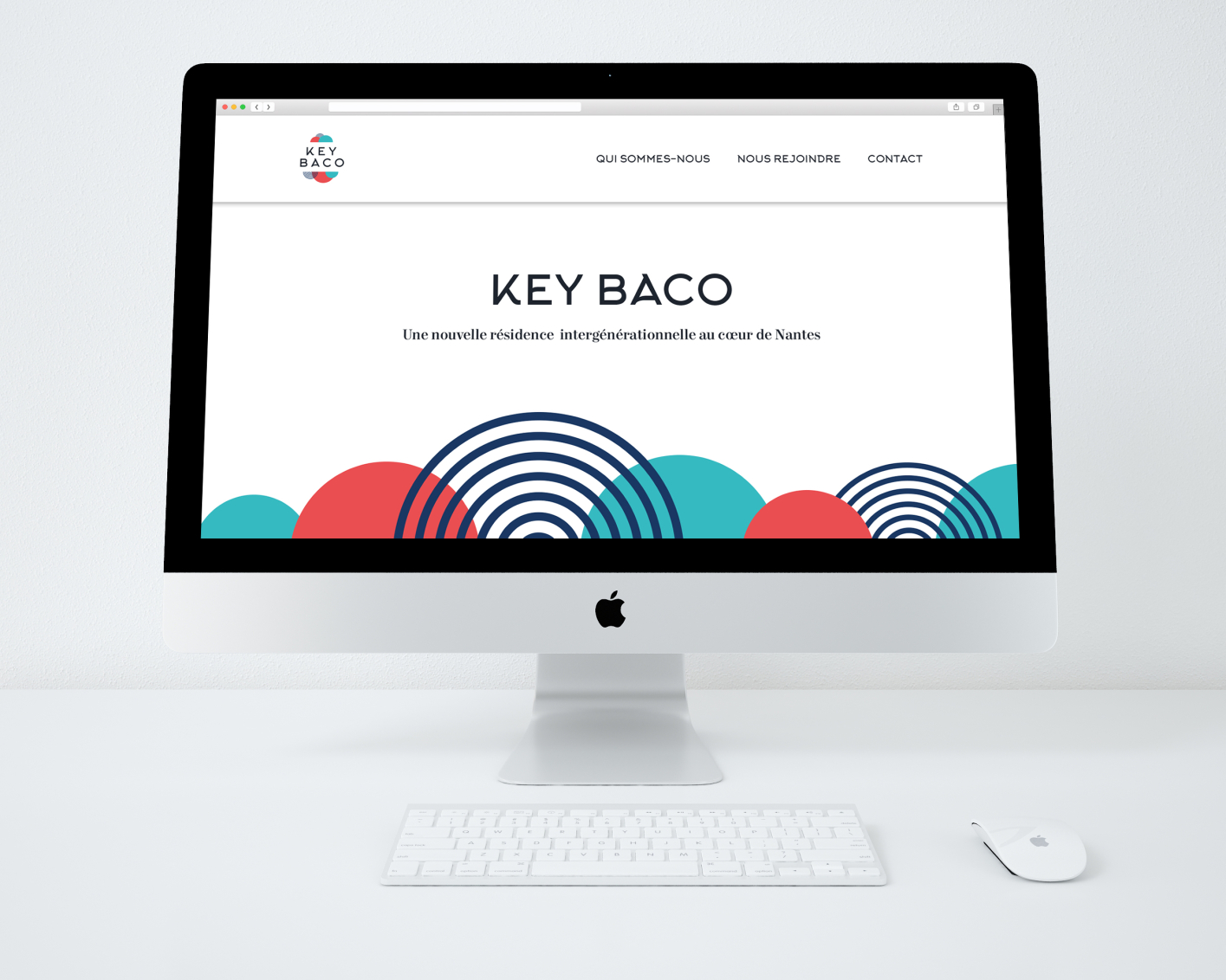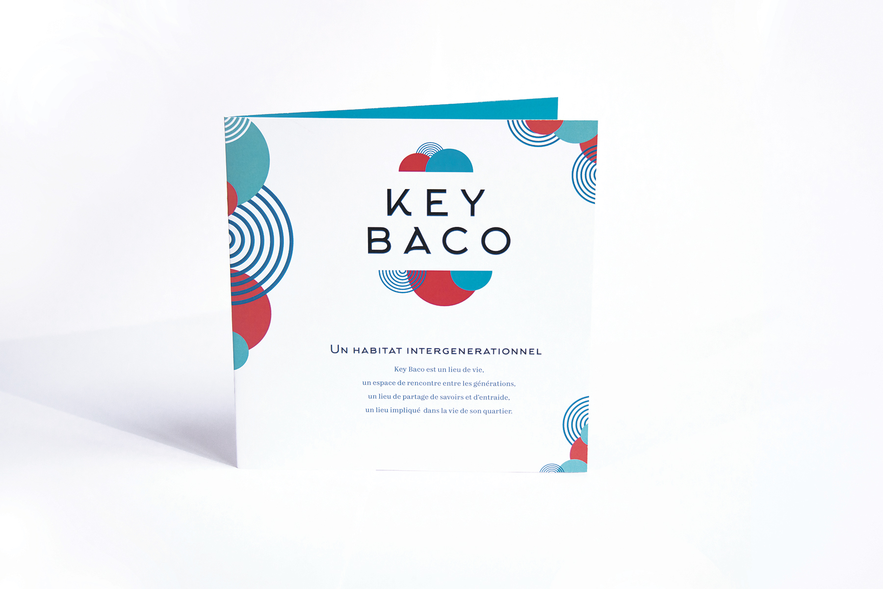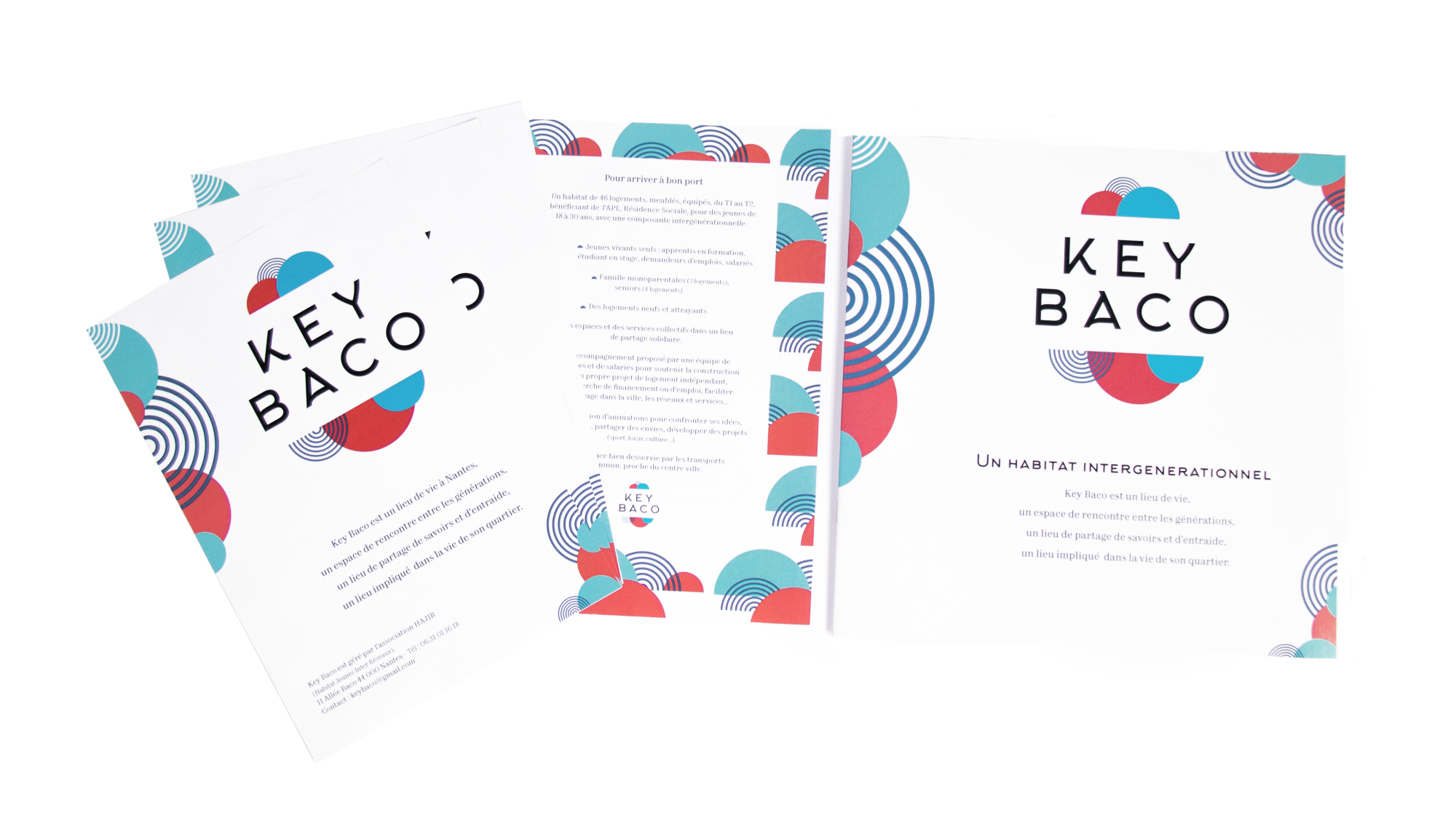 Key Baco is an intergenerational housing solution located in the centre of Nantes. The association running this project asked us to create a complete visual identity. This included a logo, corporate identity and style guide, but also a website, flyers, leaflets and some mural patterns to decorate the place.